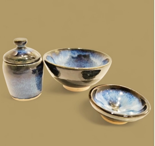 Bol + mini boît à couvercle, théhière émail nacré: Réf : Nacrés 123