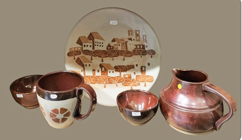Pichet + mug haut grès, 2 petits bols grès et 4 en faïence rouge Réf : PBG
