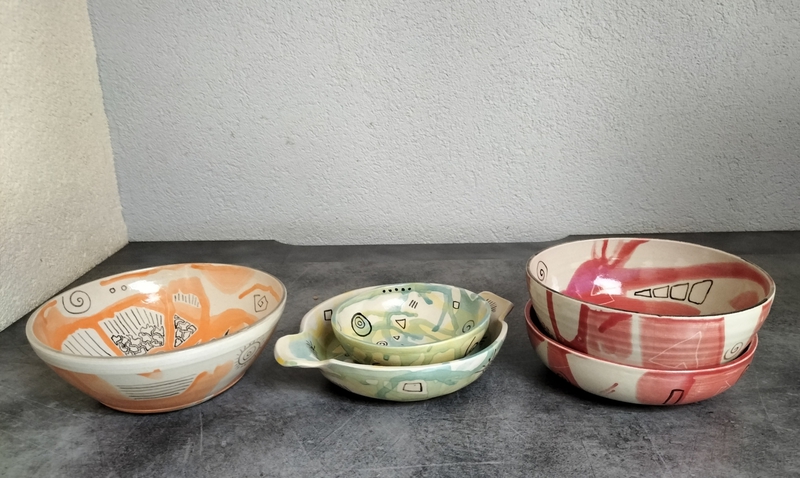 - Celles en faïences sont décorées puis recouvertes d'émail transparent et cuites à basse température (980°). Elles sont d'un usage moins courant parce que plus délicates mais supportent un lavage standard pas trop agressif.